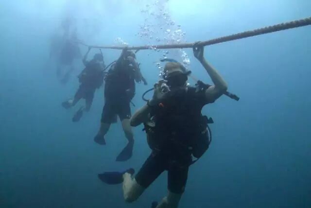 如果是参观沉船潜点,最好是沿锚绳上升,抓住锚绳做减压停留,再缓慢上升,这种出水方式是沉船潜点最佳的出水方式,因为你的潜水船通常就会停在锚绳附近等候潜水员出水。
