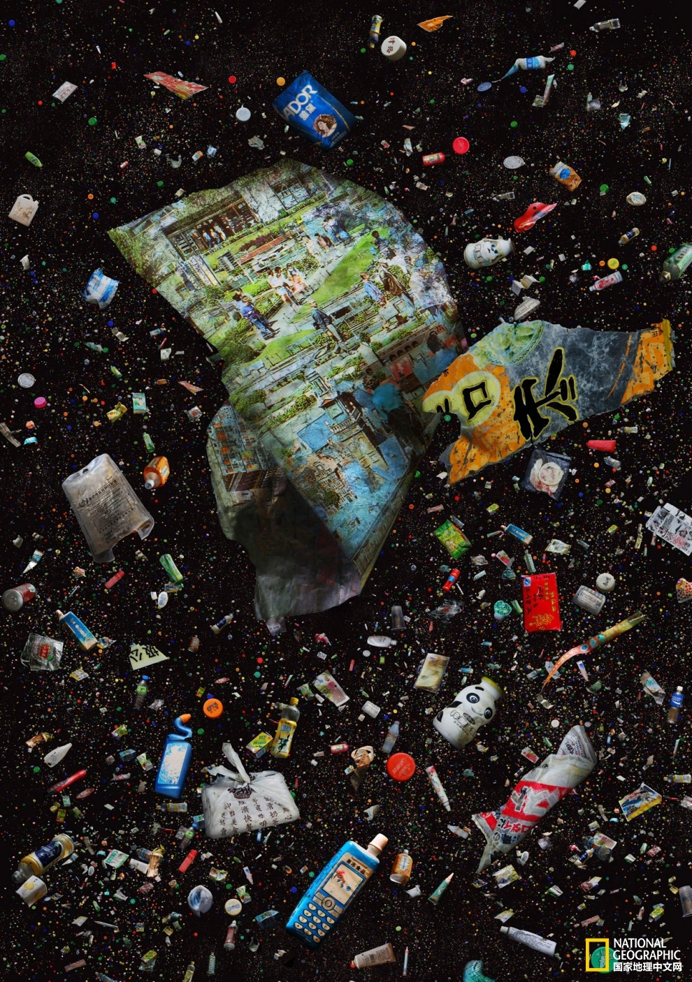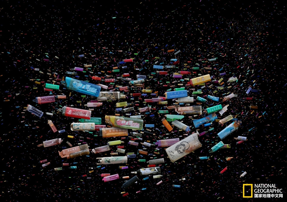“被扔掉的打火机意味着我们‘用过就扔’的一次性社会理念。”Barker说道,“打火机上面的大熊猫图案是中国的象征,也是濒危动物,它在这里似乎显得格格不入,代表着大自然对人类如此浪费行径的不满。”