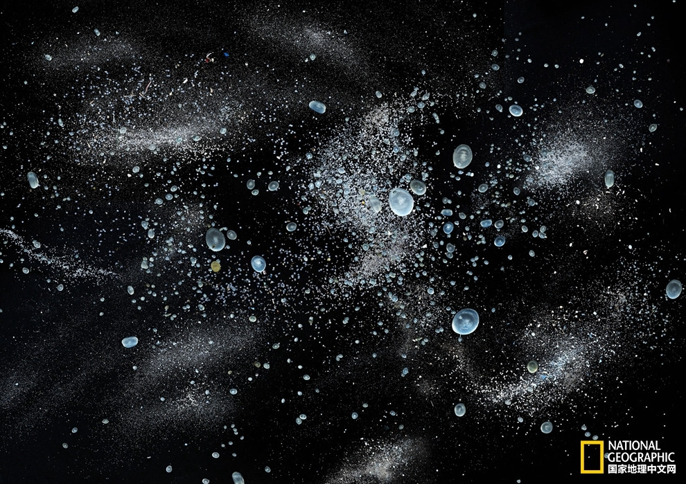2012年7月23日台风韦森特期间,150吨塑料小球从6个货物集装箱内倾洒而出。“这张图片反映了塑料小球倾洒出来当天的夜空。”Barker说道,“并描绘了那次事故发生不久后受塑料影响最严重的六个海滩。”